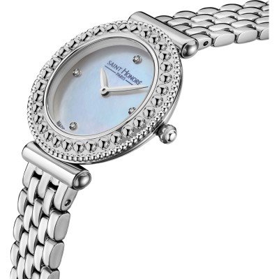 Este reloj marca Saint Honoré tiene una caja de Inox con un diámetro de 29 mm y cuenta con una correa de Inox. Dentro de la caja se encuentra un mecanismo de Ronda de alta calidad el cual esta protegido por un cristal Mineral.