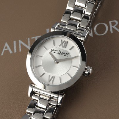 Este reloj marca Saint Honoré tiene una caja de Inox con un diámetro de 26 mm y cuenta con una correa de Inox. Dentro de la caja se encuentra un mecanismo de Ronda de alta calidad el cual esta protegido por un cristal Mineral.