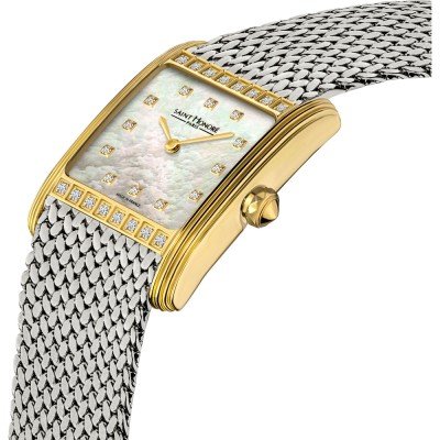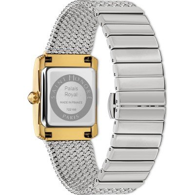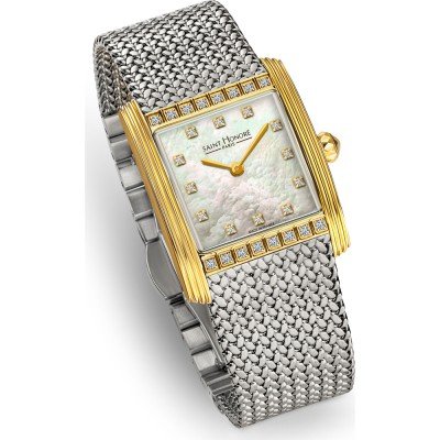 Este reloj marca Saint Honoré tiene una caja de Inox con un diámetro de 26 mm y cuenta con una correa de Inox. Dentro de la caja se encuentra un mecanismo de Ronda de alta calidad el cual esta protegido por un cristal Mineral recubierto de zafiro.