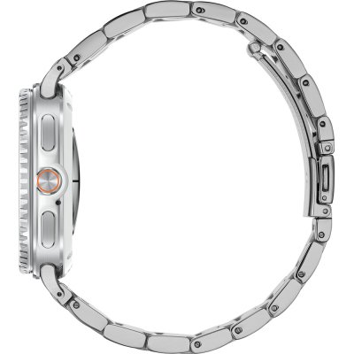 Este reloj marca Samsung tiene una caja de Aluminio con un diámetro de 46 mm y cuenta con una correa de Inox.