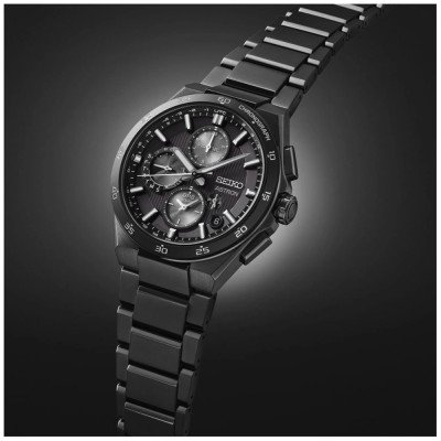 Este Seiko Astron forma parte de la primera serie de relojes Astron GPS Solar que combina la tecnología Dual-Time con una función de cronógrafo. Gracias al movimiento Calibre 5X83, este es también el primer Seiko Astron en tener una subesfera a las 12 que permite que la esfera principal y las subesferas tengan colores y texturas contrastadas, creando una presencia más dinámica y deportiva. Esta subesfera mide el tiempo transcurrido en incrementos de 1/20 de segundo, mientras que la hora del día que aparece en la esfera principal puede intercambiarse con la de la subesfera de las seis manteniendo pulsados dos botones durante tres segundos. Los relojes cuentan con un bisel de dos partes que incluye una parte superior de cerámica sobre un marco de titanio. Gracias al bajo centro de gravedad de la caja de titanio, los relojes se llevan cómodamente en la muñeca.