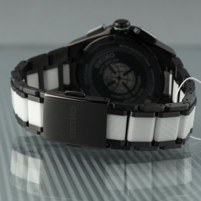 Este reloj marca Seiko tiene una caja de Titanio con un diámetro de 43.4 mm y cuenta con una correa de Titanio. Dentro de la caja se encuentra un mecanismo de Seiko de alta calidad el cual esta protegido por un cristal Zafiro doble antirreflectante.