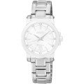 Esta correa de reloj de la :marca está hecha de acero inoxidable y se adjunta al reloj mediante pasadores de resorte. La banda tiene un ancho de 14 mm y se cierra mediante un cierre desplegable con botones pulsadores. La correa no tiene montura recta, lo que significa que esta correa sólo es adecuada para los relojes que se indican a continuación.