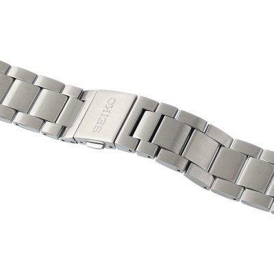 Esta correa de reloj de la :marca está hecha de acero inoxidable y se adjunta al reloj mediante pasadores de resorte. La banda tiene un ancho de 20 mm y se cierra mediante un cierre desplegable con botones pulsadores. La correa no tiene montura recta, lo que significa que esta correa sólo es adecuada para los relojes que se indican a continuación.