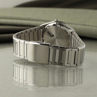 Este reloj marca Seiko tiene una caja de Inox con un diámetro de 38.9 mm y cuenta con una correa de Inox. Dentro de la caja se encuentra un mecanismo de Seiko de alta calidad el cual esta protegido por un cristal Zafiro.