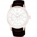 Esta correa de reloj de la :marca está hecha de cuero y se adjunta al reloj mediante pasadores de resorte. La banda tiene un ancho de 20 mm y se cierra mediante un hebilla. La correa no tiene montura recta, lo que significa que esta correa sólo es adecuada para los relojes que se indican a continuación.