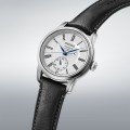 Un reloj sólido y fiable con un aspecto familiar. Este reloj clásico de Seiko es un verdadero ejemplo de artesanía. Su esfera está expertamente esmaltada a mano, lo que confiere al reloj un brillo artesanal único y cálido. Alrededor de los números romanos encontramos un minutero "ferrocarril" y en el centro de la esfera, a las seis, el indicador de 24 horas. Las manecillas en forma de espada de color azul intenso y el cristal de zafiro antirreflejos abombado completan su aspecto sofisticado y elegante. El reloj funciona con el calibre interno 6R5H, que ofrece una impresionante reserva de marcha de 72 horas.