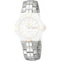 Esta correa de reloj de la :marca está hecha de acero inoxidable y se adjunta al reloj mediante pasadores de acero. La banda tiene un ancho de 17 mm y se cierra mediante un cierre desplegable con botones pulsadores. La correa no tiene montura recta, lo que significa que esta correa sólo es adecuada para los relojes que se indican a continuación.