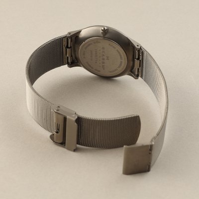 Este reloj marca Skagen tiene una caja de Titanio con un diámetro de 37 mm y cuenta con una correa de Titanio. Dentro de la caja se encuentra un mecanismo de Miyota de alta calidad el cual esta protegido por un cristal Mineral.