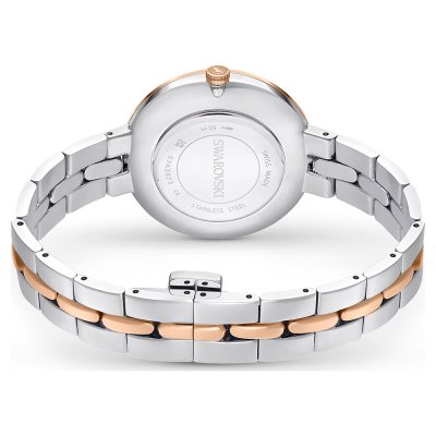 Este reloj marca Swarovski tiene una caja de Inox con un diámetro de 32 mm y cuenta con una correa de Inox. Dentro de la caja se encuentra un mecanismo de Ronda de alta calidad el cual esta protegido por un cristal Mineral.