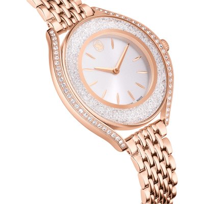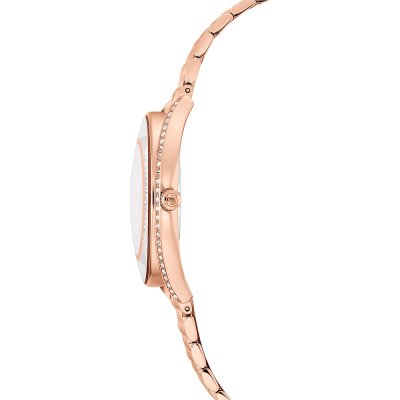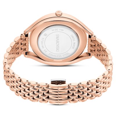 Este reloj marca Swarovski tiene una caja de Inox con un diámetro de 35.5 mm y cuenta con una correa de Inox. Dentro de la caja se encuentra un mecanismo de Ronda de alta calidad el cual esta protegido por un cristal Mineral.