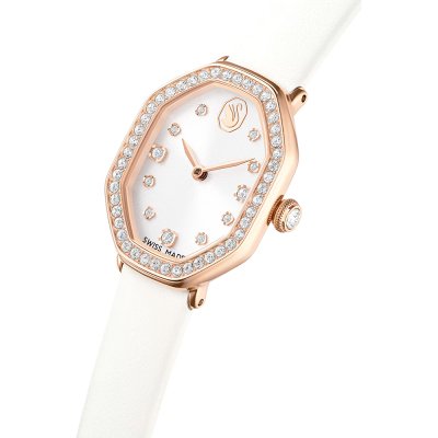 Este reloj marca Swarovski tiene una caja de Inox con un diámetro de 18 mm y cuenta con una correa de piel. Dentro de la caja se encuentra un mecanismo de Ronda de alta calidad el cual esta protegido por un cristal Mineral.