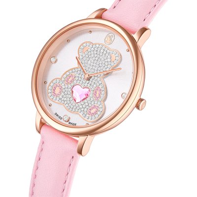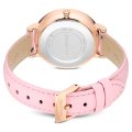 Este reloj marca Swarovski tiene una caja de Inox con un diámetro de 35 mm y cuenta con una correa de piel. Dentro de la caja se encuentra un mecanismo de Ronda de alta calidad el cual esta protegido por un cristal Mineral.