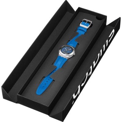 Este reloj marca Swatch tiene una caja de Inox con un diámetro de 33 mm y cuenta con una correa de piel. Dentro de la caja se encuentra un mecanismo de ETA de alta calidad el cual esta protegido por un cristal Acrílico.