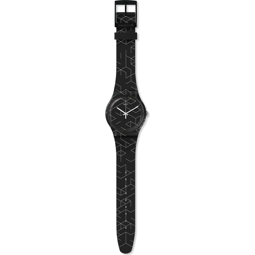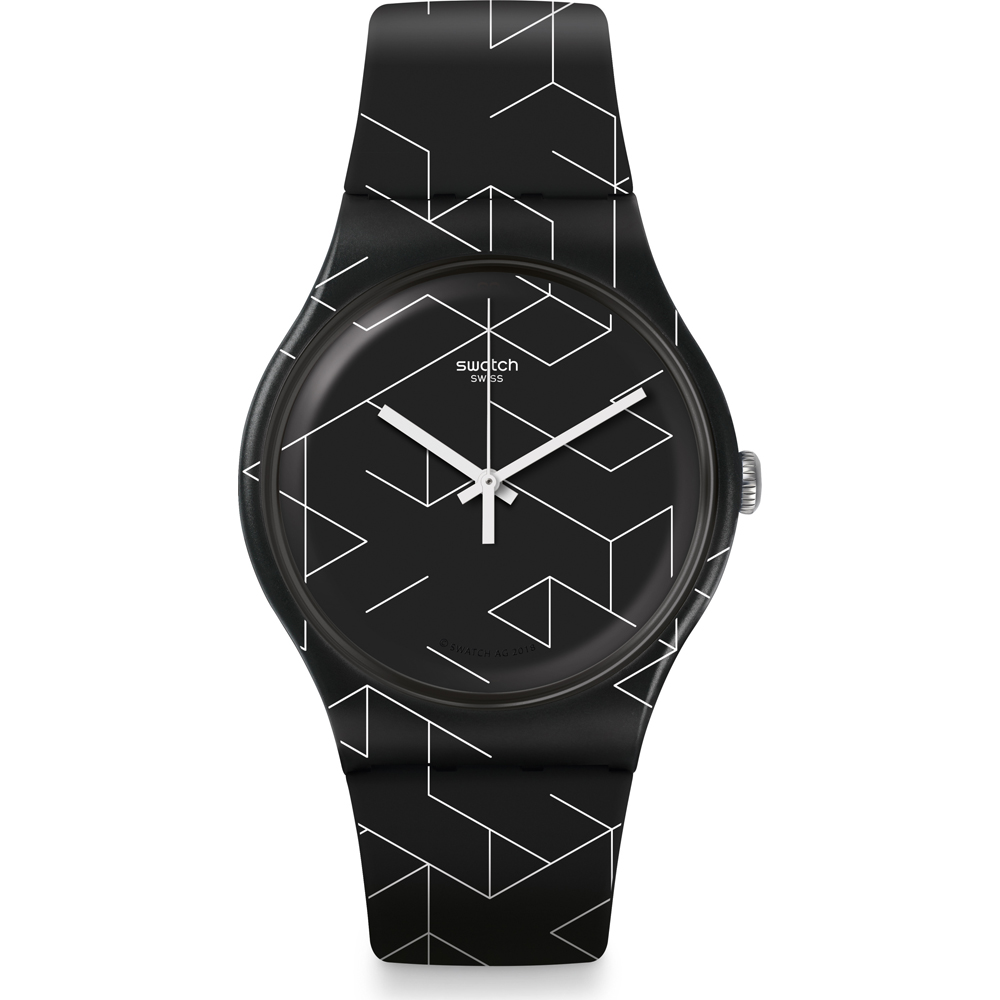 Este reloj marca Swatch tiene una caja de plástico con un diámetro de 41 mm y cuenta con una correa de Goma. Dentro de la caja se encuentra un mecanismo de Cuarzo de alta calidad el cual esta protegido por un cristal plexiglás.