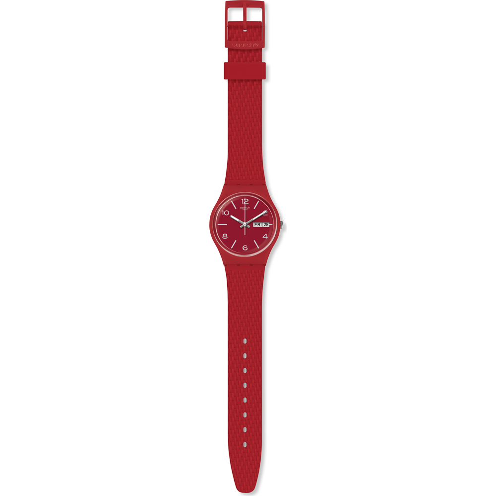 Este reloj marca Swatch tiene una caja de plástico con un diámetro de 34 mm y cuenta con una correa de Plástico /resina. Dentro de la caja se encuentra un mecanismo de Cuarzo de alta calidad el cual esta protegido por un cristal plexiglás.