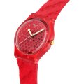 Este reloj marca Swatch tiene una caja de Plástico de origen biológico con un diámetro de 34 mm y cuenta con una correa de Goma. Dentro de la caja se encuentra un mecanismo de ETA de alta calidad el cual esta protegido por un cristal Acrílico.