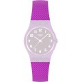 Este reloj marca Swatch tiene una caja de Resina con un diámetro de 25 mm y cuenta con una correa de Goma. Dentro de la caja se encuentra un mecanismo de ETA de alta calidad el cual esta protegido por un cristal Acrílico.