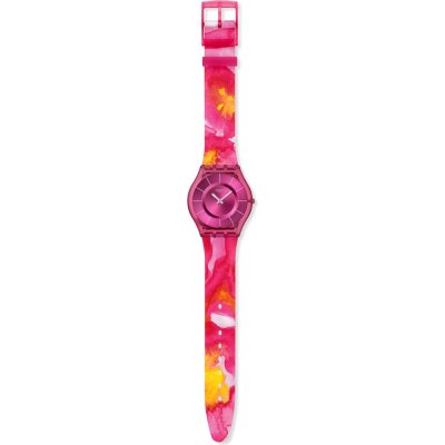 Este reloj marca Swatch tiene una caja de Plástico de origen biológico con un diámetro de 33.7 mm y cuenta con una correa de Goma. Dentro de la caja se encuentra un mecanismo de ETA de alta calidad el cual esta protegido por un cristal Acrílico.