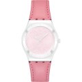 Este reloj marca Swatch tiene una caja de Inox con un diámetro de 33 mm y cuenta con una correa de piel. Dentro de la caja se encuentra un mecanismo de ETA de alta calidad el cual esta protegido por un cristal Acrílico.