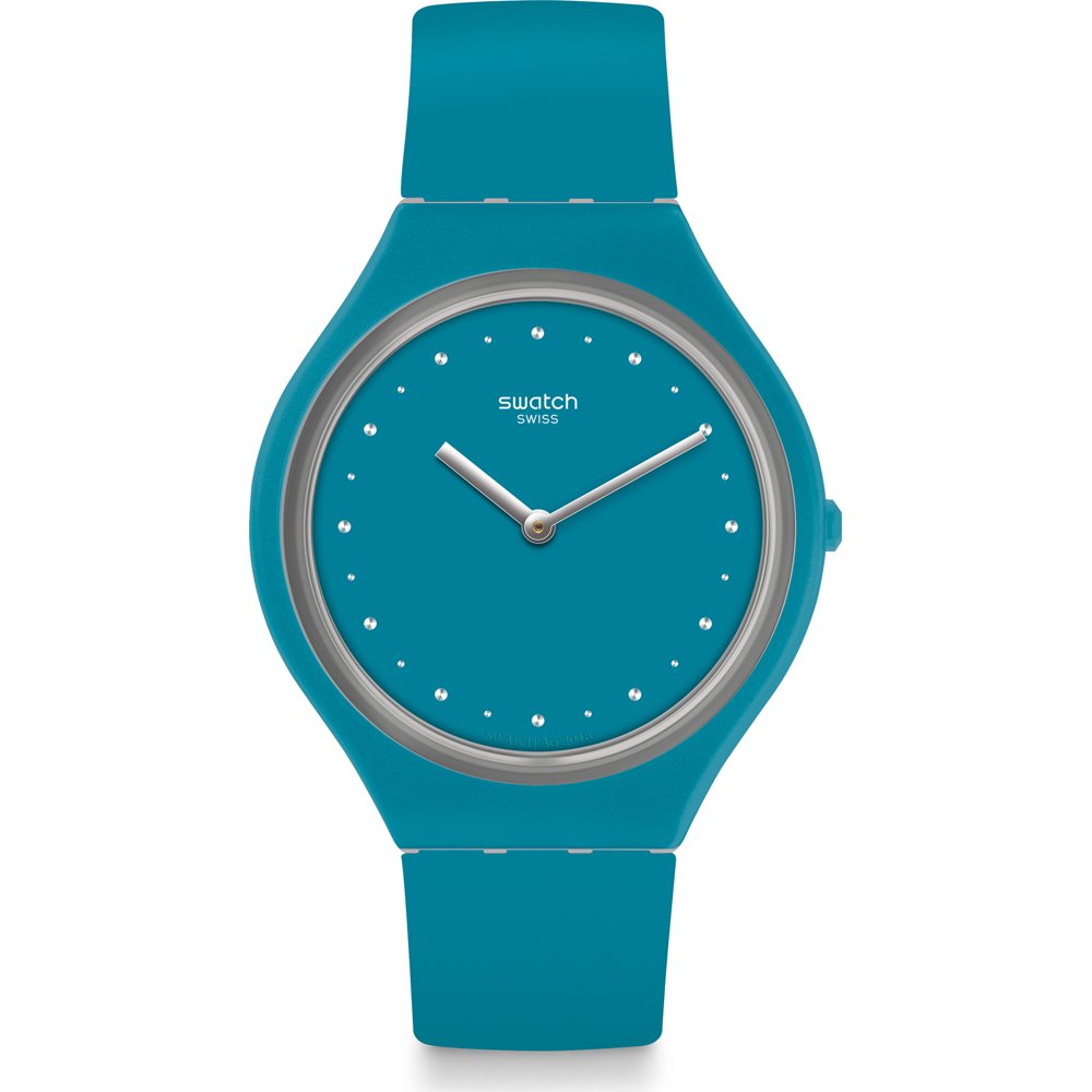 Este reloj marca Swatch tiene una caja de plástico con un diámetro de 37 mm y cuenta con una correa de Goma. Dentro de la caja se encuentra un mecanismo de Cuarzo de alta calidad el cual esta protegido por un cristal plexiglás.
