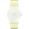 Este reloj marca Swatch tiene una caja de Plástico de origen biológico con un diámetro de 34 mm y cuenta con una correa de Goma. Dentro de la caja se encuentra un mecanismo de ETA de alta calidad el cual esta protegido por un cristal Acrílico.