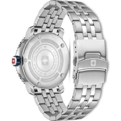 Este reloj marca Swiss Military Hanowa tiene una caja de Inox con un diámetro de 44 mm y cuenta con una correa de Inox. Dentro de la caja se encuentra un mecanismo de Ronda de alta calidad el cual esta protegido por un cristal Zafiro.