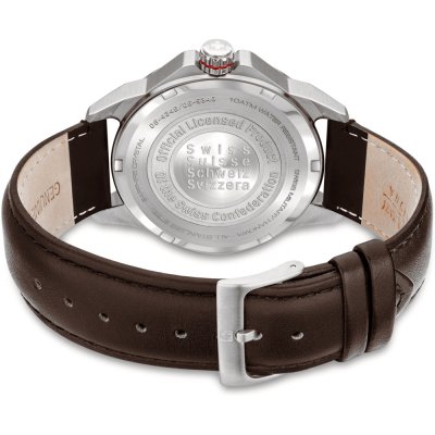 El reloj es resistente al agua hasta 10 ATM. Esto significa que el reloj es adecuado para nadar. El reloj viene con Swiss Military 3+2.