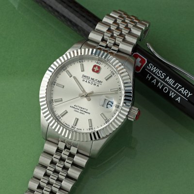 El reloj es resistente al agua hasta 10 ATM. Esto significa que el reloj es adecuado para nadar. El reloj viene con Swiss Military 3+2.