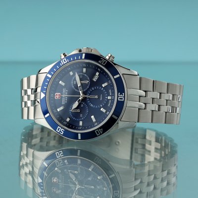 El reloj es resistente al agua hasta 10 ATM. Esto significa que el reloj es adecuado para nadar. El reloj viene con Swiss Military 3+2.