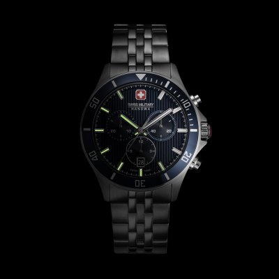 El reloj es resistente al agua hasta 10 ATM. Esto significa que el reloj es adecuado para nadar. El reloj viene con Swiss Military 3+2.