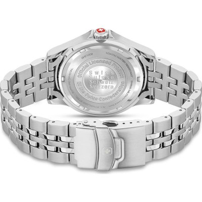 El reloj es resistente al agua hasta 10 ATM. Esto significa que el reloj es adecuado para nadar. El reloj viene con Swiss Military 3+2.
