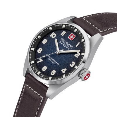 Este reloj marca Swiss Military Hanowa tiene una caja de Inox con un diámetro de 42 mm y cuenta con una correa de piel. Dentro de la caja se encuentra un mecanismo de Ronda de alta calidad el cual esta protegido por un cristal Zafiro.