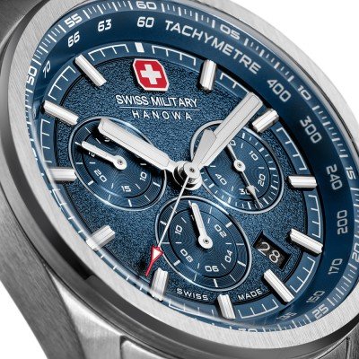 Este reloj marca Swiss Military Hanowa tiene una caja de Inox con un diámetro de 43 mm y cuenta con una correa de Inox. Dentro de la caja se encuentra un mecanismo de Ronda de alta calidad el cual esta protegido por un cristal Zafiro.