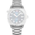 Esta correa de reloj de la :marca está hecha de acero inoxidable y se adjunta al reloj mediante pasadores con resorte de liberación rápida. La banda tiene un ancho de 21 mm y se cierra mediante un cierre desplegable con botones y seguridad. La correa tiene una montura recta, lo que significa que esta correa es adecuada para todos los relojes de la Swiss Military Hanowa con montura recta.