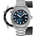 El reloj es resistente al agua hasta 10 ATM. Esto significa que el reloj es adecuado para nadar. El reloj viene con Swiss Military 3+2.