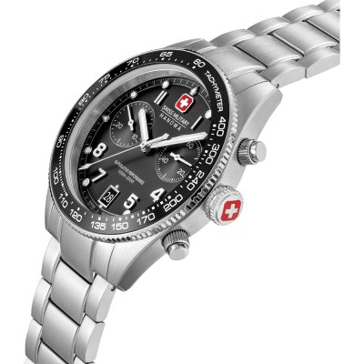 El reloj es resistente al agua hasta 10 ATM. Esto significa que el reloj es adecuado para nadar. El reloj viene con Swiss Military 3+2.