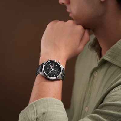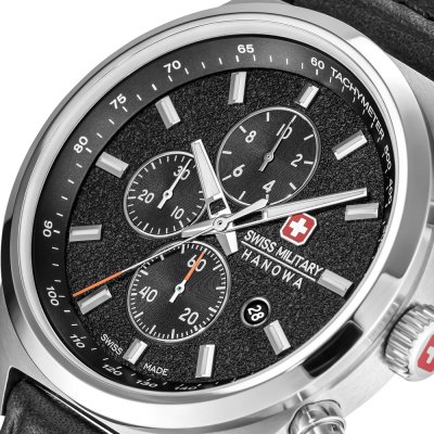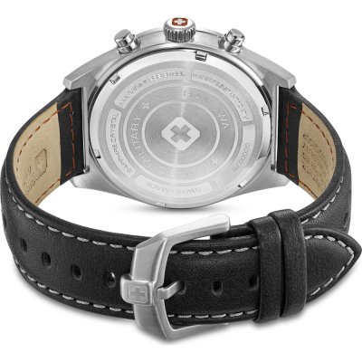 Este reloj marca Swiss Military Hanowa tiene una caja de Inox con un diámetro de 43 mm y cuenta con una correa de piel. Dentro de la caja se encuentra un mecanismo de Ronda de alta calidad el cual esta protegido por un cristal Zafiro.