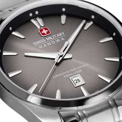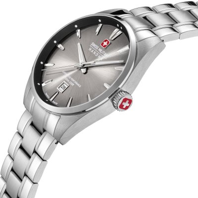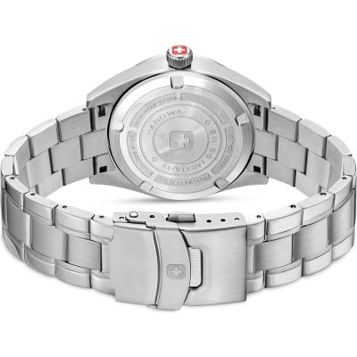 El reloj es resistente al agua hasta 10 ATM. Esto significa que el reloj es adecuado para nadar. El reloj viene con Swiss Military 3+2.