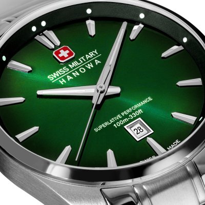 El reloj es resistente al agua hasta 10 ATM. Esto significa que el reloj es adecuado para nadar. El reloj viene con Swiss Military 3+2.