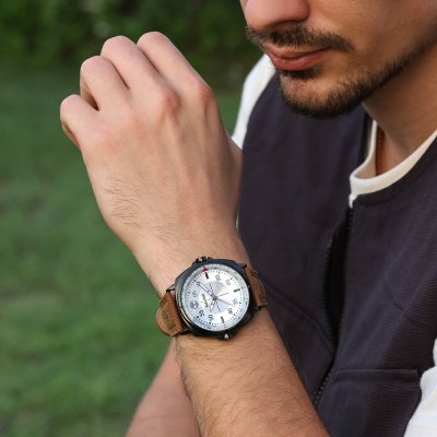 Este reloj marca Timberland tiene una caja de Aleación metálica con un diámetro de 48 mm y cuenta con una correa de piel. Dentro de la caja se encuentra un mecanismo de Seiko de alta calidad el cual esta protegido por un cristal Mineral.