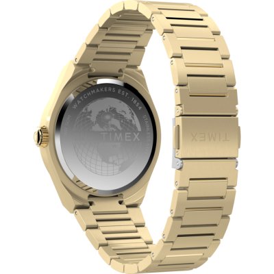 Este reloj marca Timex tiene una caja de Inox con un diámetro de 39 mm y cuenta con una correa de Inox. Dentro de la caja se encuentra un mecanismo de Timex de alta calidad el cual esta protegido por un cristal Mineral.