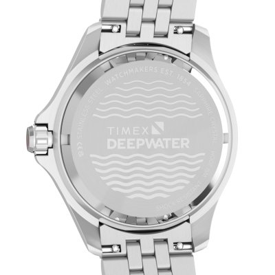 Este reloj marca Timex tiene una caja de Inox con un diámetro de 42 mm y cuenta con una correa de Inox. Dentro de la caja se encuentra un mecanismo de Timex de alta calidad el cual esta protegido por un cristal Zafiro.