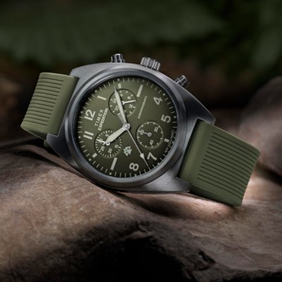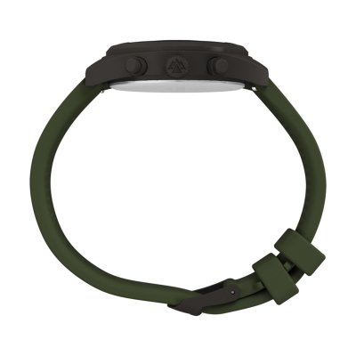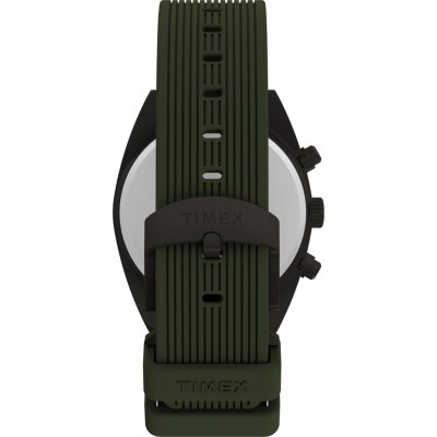 Este reloj marca Timex tiene una caja de Inox con un diámetro de 41 mm y cuenta con una correa de Goma. Dentro de la caja se encuentra un mecanismo de Timex de alta calidad el cual esta protegido por un cristal Mineral.
