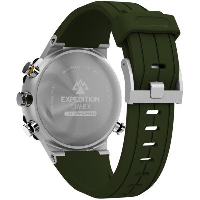 Este reloj marca Timex tiene una caja de Inox con un diámetro de 45 mm y cuenta con una correa de Goma. Dentro de la caja se encuentra un mecanismo de Timex de alta calidad el cual esta protegido por un cristal Mineral.