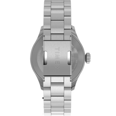 Este reloj marca Timex tiene una caja de Inox con un diámetro de 41 mm y cuenta con una correa de Inox. Dentro de la caja se encuentra un mecanismo de Timex de alta calidad el cual esta protegido por un cristal Mineral.