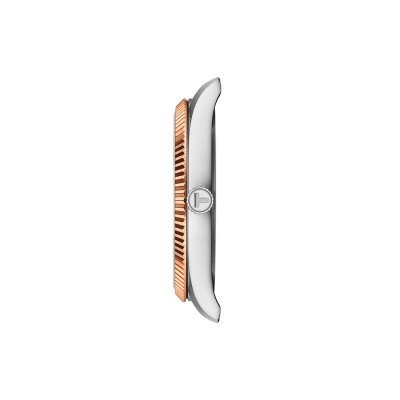 Este reloj marca Tissot tiene una caja de Inox con un diámetro de 40 mm y cuenta con una correa de Inox. Dentro de la caja se encuentra un mecanismo de ETA de alta calidad el cual esta protegido por un cristal Zafiro antirreflectante solitario.