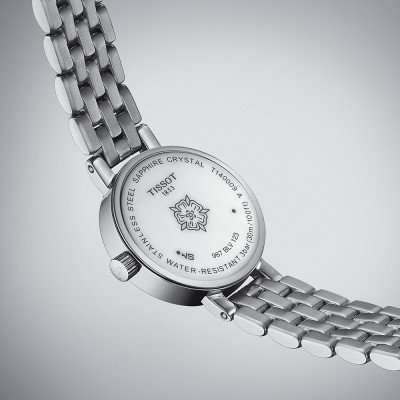 Este reloj marca Tissot tiene una caja de Inox con un diámetro de 20 mm y cuenta con una correa de Inox. Dentro de la caja se encuentra un mecanismo de ETA de alta calidad el cual esta protegido por un cristal Zafiro.
