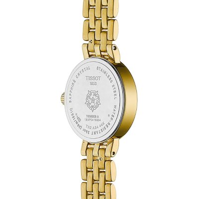 Este reloj marca Tissot tiene una caja de Inox con un diámetro de 19.5 mm y cuenta con una correa de Inox. Dentro de la caja se encuentra un mecanismo de ETA de alta calidad el cual esta protegido por un cristal Zafiro.