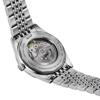 Este reloj marca Tissot tiene una caja de Inox con un diámetro de 39 mm y cuenta con una correa de Inox. Dentro de la caja se encuentra un mecanismo de ETA de alta calidad el cual esta protegido por un cristal Zafiro antirreflectante solitario.